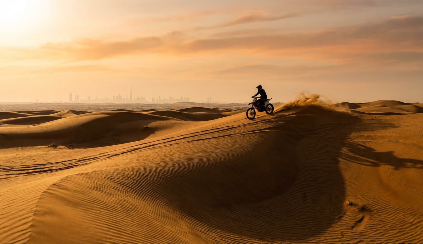 | Evening Dirt Bike + BBQ | Sunset photos, dinner | Golden hour ride, camp entertainment | 6–7 hours | Lahbab or Al Marmoom |
