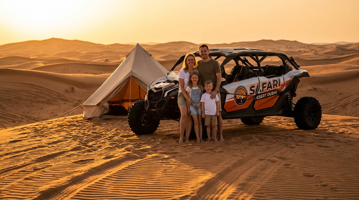 Safari Desert Dubai offers 24-hour booking, licensed guides, a modern maintained fleet and staged launch sites like Al Marmoom and Lahbab Red Dunes. The company provides door-to-door pickup, transparent vouchers and day-of WhatsApp coordination to keep your family informed.